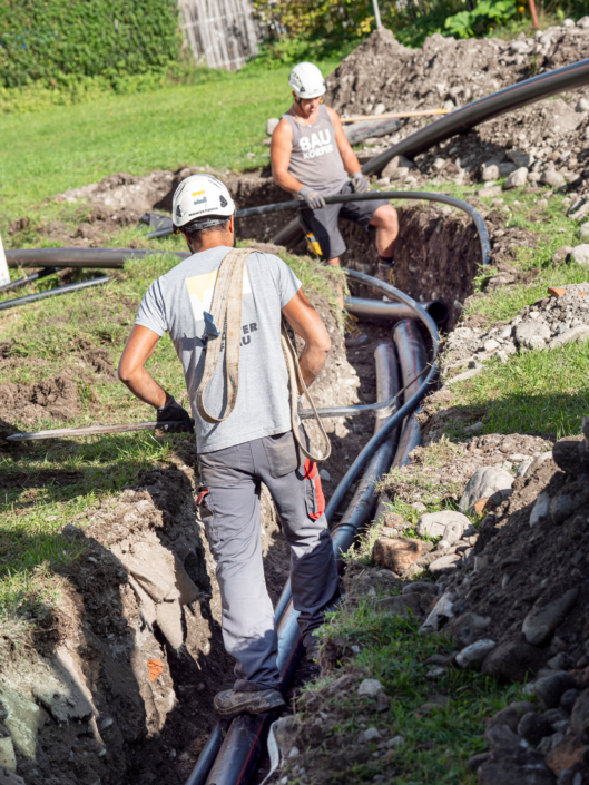 Wie ein unzertrennliches Duo gehört der Leitungs- und Kabelbau zusammen. In den von uns angelegten Gräben werden Leerrohre verlegt, um anschließend die entsprechenden Leitungen oder Kabel einzuziehen. In diesem Arbeitsbereich genießen wir einen erstklassigen Ruf. Unser Leistungsspektrum erstreckt sich von Glasfaserkabeln über Strom- und Gasleitungen bis hin zu Leerschläuchen.